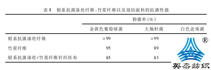 银系抗菌涤纶 /竹浆纤维针织混纺面料经前处理和染色后,抗菌性能严重下降,所以为了保证面料良好的抗菌效果,需在后整理中添加少量的抗菌剂。