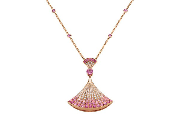 2021年,BVLGARI宝格丽经典Divas’ Dream珠宝系列再添新作, 彩色渐变色调的18K玫瑰金项链提供两种不同的色彩可选:钻石和蓝色蓝宝石组合、或钻石和粉色蓝宝石组合,展现出Divas’ Dream珠宝系列与生俱来的多样功能与多变风格,