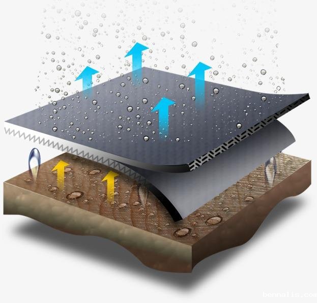 Sympatex、OMNI-TECH为代表的一种防水透气薄膜,其微孔膜中包含着大量的微孔,这些微孔的大小远远小于雨滴的大小,但是又能够使水蒸气分子通过,以此达到防水透气的目的。三是涂层织物,目前市场上的防水透气织物生产商大多是在聚氨基甲酸酯基础上发展的微孔透气涂层,透气性随涂层膜厚度不同而有差异。