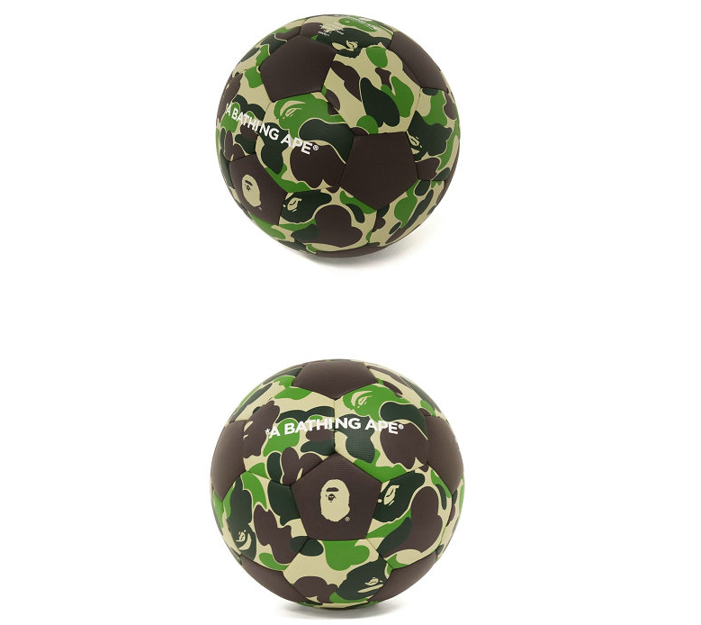 BAPE 全新 ABC Camo 足球系列上架,BAPE 当真将自家标志性的 ABC Camo “搬”上了足球,并以此炮制了一款带有猿人头 logo 的足球单品。