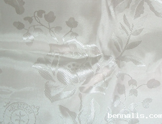 详细介绍:粘胶丝提花缎类丝织物,质地丰厚,缎地平滑完亮,花纹突出。经,纬均采纳133dtex(120旦)有完粘胶丝,在5枚缎纹地上呈现一色纬花,成品经密65.6根/cm左右,纬密30根/cm左右,纹样以中型写实花卉梅,兰,竹,菊,和团花福,禄,寿字样的民族纹样为主,一般用清地或半清地布局,采纳单织轴1x1梭箱,织物正面向下织制,坯绸经退浆,上色,单滚筒机后整理。产品宜作秋,冬工作装织物和制作睡衣等。