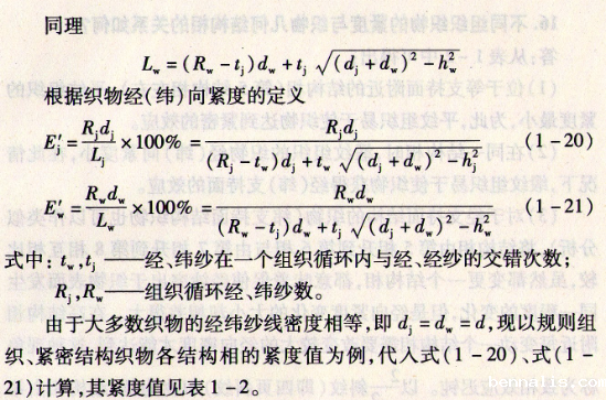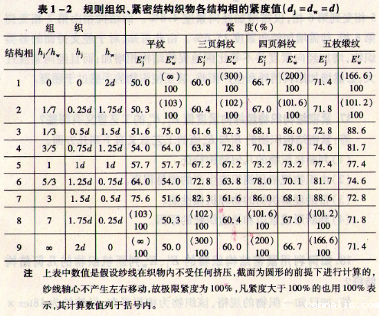 15.规则组织紧密结构织物各结构相的经向紧度值(E'j)和纬向紧度(E'w)值各如何?