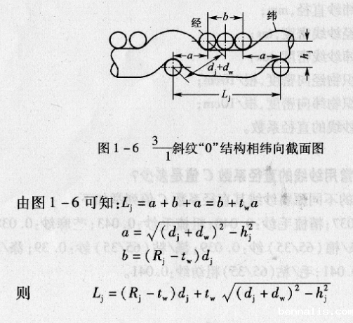答:今从3/1斜纹织物的纬向截面图1-6,推导出规则组织、紧密结构织物各结构相的经(纬)向紧度值,E'j(E'w)见表1-2。