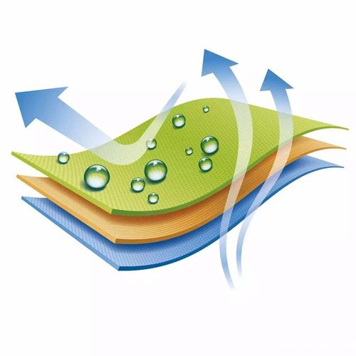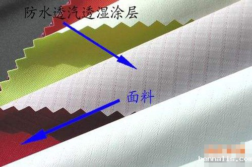 织物面料和里料可根据用途的不同,采用机织物或针织物,也可以采用无纺布或絮片。所用织物可以是棉、毛等天然纤维,也可以是涤纶、尼龙等化学纤维纯纺或混纺织物。作为外层织物,好使用机织物。为提高防水性,面层织物应经过拒水整理。整理效果要达到拒水级以上。根据使用要求面料可以采用迷彩、阻燃、防静电、抗油拒水、易去污、防酸碱等功能性织物。层压织物结构设计根据终用途需要,层压织物可采取不同的结构设计和复合层数。两层复合可以是面料一与薄膜复合,采用活里结构也可以是里料与薄膜复合,采用活面结构,这样易于洗涤,适用于民用运动服与防寒服三层复合是将面料、薄膜与里料复合在一起,虽然手感稍硬,但可提高耐磨性,适用于部队作战服和劳动防护服。四层或多层复合可增加层压织物的功能性,如气体阻力层或液气阻力层的防毒材料、絮片、远红外棉保暖材料等。