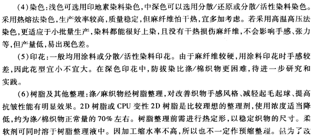 (1)混纺化纤织物比:涤麻混纺化纤织物细特单纱织物以内销为主,考虑到国内消费特点和消费水平,织物应该挺括,不易起皱,布面较细洁,所以涤纶的混纺化纤织物比高于苎麻。一般,涤纶的混纺化纤织物比为55%~70%,苎麻的混纺化纤织物比为30%~45%。
