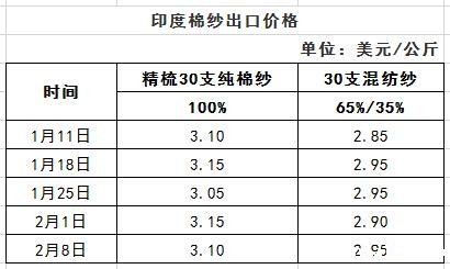 随着棉花、粘胶、涤纶价格上涨,2月2-8日一周,印度纱线价格随之大幅上调。据了解,过去3个月受纱线原料价格大涨及市场需求疲软的影响,印度纱厂利润逐步被压缩。