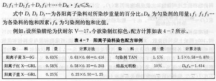 表4-8阳离子染料上色配方的调整及计算