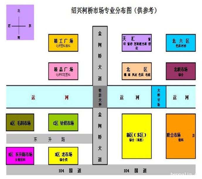北区:北区就是轻纺城市场算是柯桥大的市场,品种也算是比较全面的大体分6个大区,每个区里有5-7条街,共3层。
