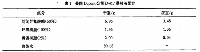 有关聚酯纤维浸胶活化的研究早期主要基于帘子布的浸胶活化处理,其中以美国Dupont公司发明的I)-417预浸胶液配方为典型[15I,如表1所示,其中黄耆树脂作为润湿剂提高预浸胶液对聚酯纤维的浸润性。聚酯纤维浸渍D-417预浸胶液后,在240"C热处理1min,从而获得活化的聚酯纤维表面,后续进行涂层复膜工序。随着汽车工业的发展及聚酯纤维/TPU涂层织物的推广应用,聚酯纤维的浸胶处理研究也越来越多。LangerHeimojcl6]采用环氧树脂和含有胺化亚酰胺、N_-毗咯烷基基团的碳一碳链聚合物作为浸胶液活化聚酯纤维,ZaviszaCl7]采用苯酚封闭苯二异氰酸酯和表氯醇一甘油缩聚的环氧化合物溶液浸渍处理聚酯纤维,Solomon[伯]采用己内酰胺封闭异氰酸酯和环氧树脂浸胶处理聚酯纤维,均获得了较好的活化效果。辽宁邦迪捻织有限公司[19]在引进德国ZELL公司浸胶设备及技术的基础上,发明了新型浸胶液配方,其主要组分为二异氰酸盐(60"--80)、环氧树脂(18"--35)、聚乙烯醇/甲基纤维素(0.5~2.5)。]用水溶性的环氧树脂和邻苯二甲酸酐或氯化亚锡作为浸胶液,粘合力提高约15%,研究表明环氧树脂作为媒介与聚酯帘线发生了化学反应。过浸渍改性环氧树脂(sJR_2)和预缩合间苯二酚一甲醛树脂(sJR_1)的水溶液,实现了涤纶织物的表面粘合活化。22,23]采用国产封闭异氰酸酯、环氧树脂、黄耆树脂为主要原料,制备出性能质量达到进口水平的聚酯纤维浸胶液。2浸胶液作用机理浸胶液的作用是在聚酯纤维表面引入活性基团,进而提高涂层织物的界面粘接强度。对涂层织物而言,聚酯纤维与涂层的粘接作用主要有机械互锁力、范德华作用力及化学键力。浸胶液渗透进纤维或织物内,在纤维和涂层之间产生机械的咬合,从而产生机械互锁力。一般浸胶液的渗透作用越强,形成的机械作用力越大;织物表面平整度越差,涂层和织物之间的机械互锁力也越大。由于聚酯纤维表面惰性,亲水性较差,仅在聚酯分子链末端存在少量羧基、羟基,因此范德华作用力的贡献不大。通过浸胶液与聚酯纤维的反应,在聚酯纤维表面引入羟基等活性基团,在织物与涂层之间形成化学键,所产生的化学键力对涂层织物的界面粘接影响大。以D-417浸胶液配方为例,浸胶液与聚酯纤维的反应机理为环氧树脂的环氧基团与聚酯的端羧基之间发生反应引入活性的一OH,封闭异氰酸酯在高温下解封产生活性很强的一NCO基团,一NCC屿聚酯中的一OH起反应或再酯化直接反应。在高温下,还存在异氰酸酯与聚酯中的极性酯起反应,以及异氰酸酯与环氧树脂的交联固化反应,通过反应在聚酯分子中引入活性较强的一OH和一NH,并在聚酯纤维表面形成树脂状的涂层,使聚酯的极性增强,使得聚酯与涂层材料的化学键合增强。界面研究方法界面研究一直是复合材料研究领域的重点与难点,对于涂层织物,由于纤维表面的不规则及纤维本身缺乏刚性,加之织物表面的多孔结构,导致一些传统界面表征手段的应用受到限制,其界面研究的方法更加困难。界面研究方法主要分为以下四个方面:织物浸润性表征、织物表面形貌表征、界面反应动态过程表征、界面结合力表征。