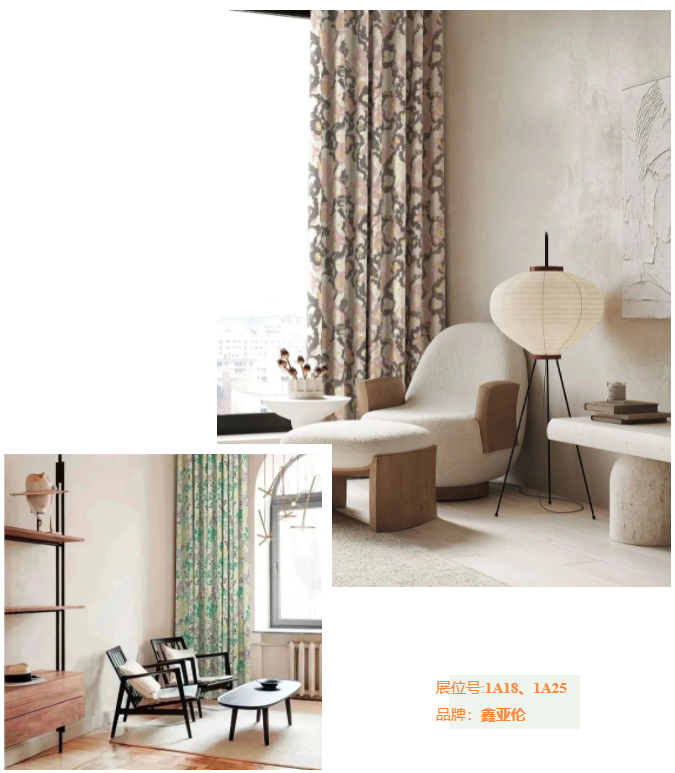 本次展会,如意屋将带来窗帘、窗饰、墙布、床品、毛浴巾、地毯、真丝睡衣……全系列软装产品,此外,还将带来其特有的遮光、阻燃、三防、抗菌、除甲醛、遮影窗纱等专利功能产品,用好产品为消费者打造更好的氛围家。