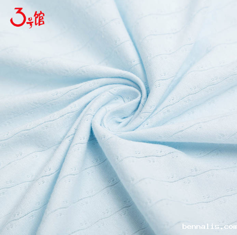 30s棉单面提花:这款布料的成份为95%棉+5%氨纶,织物的每平方米重量跟有效宽度分别为130g/m²和175cm,布料可用于生产宝宝工作装、月子服等产品,织物的价格为50块钱每米。