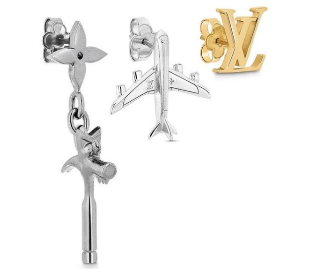 这个“LV Comics Earrings”涵盖了 3 款旅行与建筑结构灵感的耳环,其中飞机、锤子以及 LV 交叉 logo 造型尤为抢镜。
