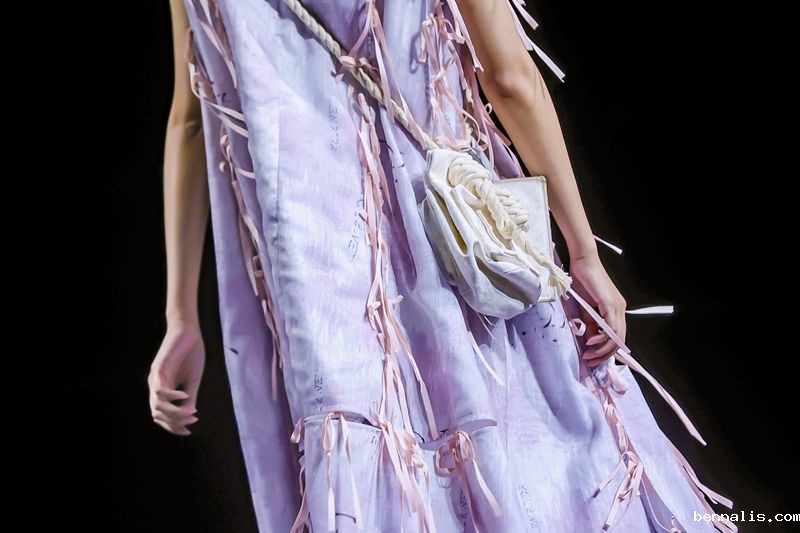 为了契合报童的原始形象,本季使用了较多的挎包元素,并将其解构为外套或可拆卸的配件来增加服装的趣味性;衣服上的蝴蝶结、抽褶等细节体现出无差别时装品牌的特色,不为服装下定义而是由消费者来决定衣服的形态,从而强化服装的可穿性和互动性。
