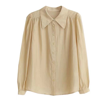 首先是衬衫版型,初秋的衬衫版型是比较修身的,面料也比较薄,对于有溜肩或者是小宽肩的女生有很好的修饰性。