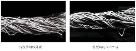 主要指在环锭纺纱机上通过短/短、短/长纤维加捻成的层压纱和通过单须条分束或须条集聚方式得到的纱。