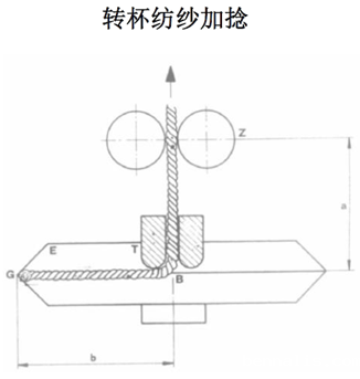 利用搓辊的往复休闲对两根须条实施同向加捻,靠须条自身的退捻力矩相互反卷在一起,形成一个双股的稳定结构的纱,属非自由端纺纱。
