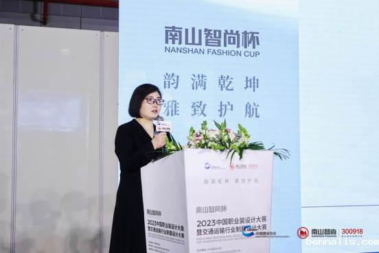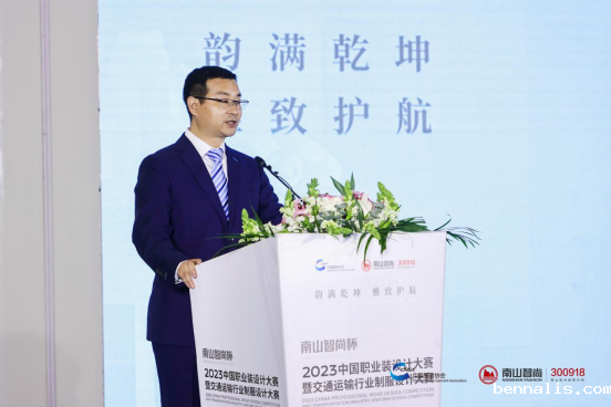 中国服装协会常务副会长杨金纯在启动现场中表示中国职业装设计大赛举办三年来,因其公正客观的评审机制、行业领先的评委团队、高水平的作品质量得到了行业各方与职业装用户方的广泛认可。今年与山东南山智尚科技股份有限公司联合主办,旨在进一步推动交通运输领域职业装的文化深耕与设计创新。与此同时,杨金纯会长对备受关注的作品征集、初赛评选、大师课、决赛大秀等环节进行详细说明。他强调,本次大赛不仅金银铜奖奖金丰厚,优秀奖及入围奖均有现金奖励,同时入围选手信息及其作品将纳入“中国服装协会中国职业装优秀设计人才库”,并有机会与山东南山智尚科技股份有限公司签约合作。