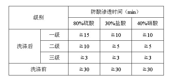 GB12012-1989标准对透气型防酸工作服防酸渗透时间的规定